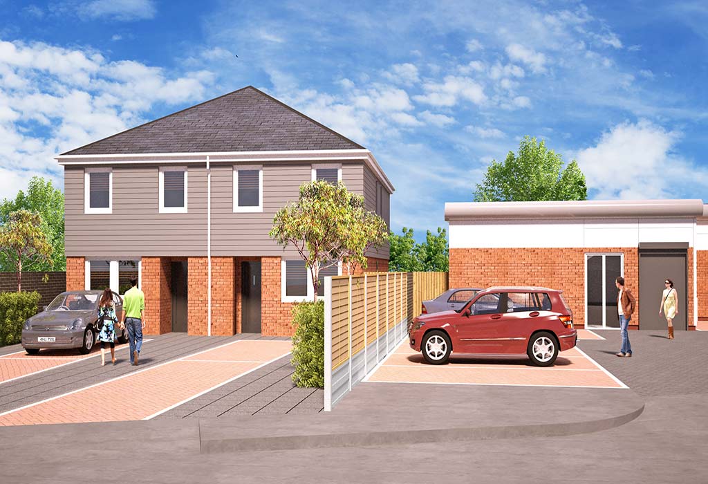 Acton, W3 An existing parade of light industrial units with planning consent to demolish and redevelop as 9 houses and 1 commercial unit.